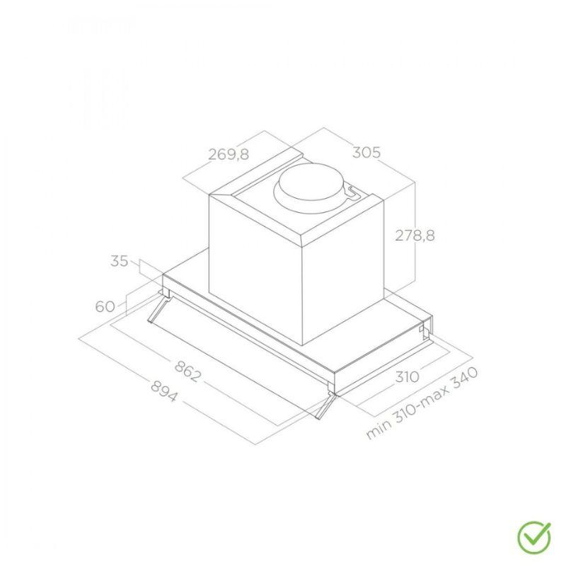 Sa protokom vazduha do 550 m³/h, ovaj model osigurava brzo uklanjanje pare i neprijatnih mirisa. Tri brzine ventilacije, kojima se upravlja putem mehaničkog točkića, omogućavaju precizno podešavanje jačine usisavanja prema potrebama korisnika.