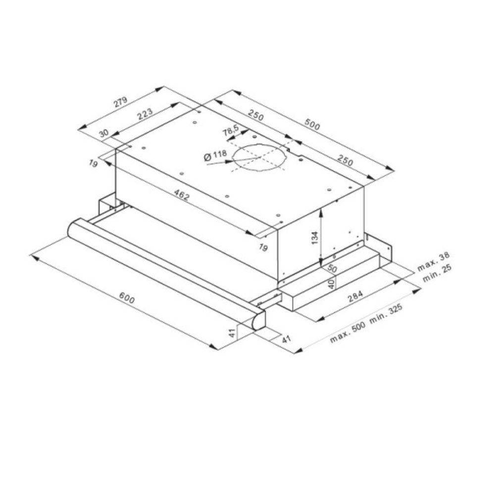 Diskretna teleskopska konstrukcija omogućava jednostavnu integraciju u viseće elemente, čineći ovaj aspirator odličnim izborom za modernu, funkcionalnu i estetski sređenu kuhinju.