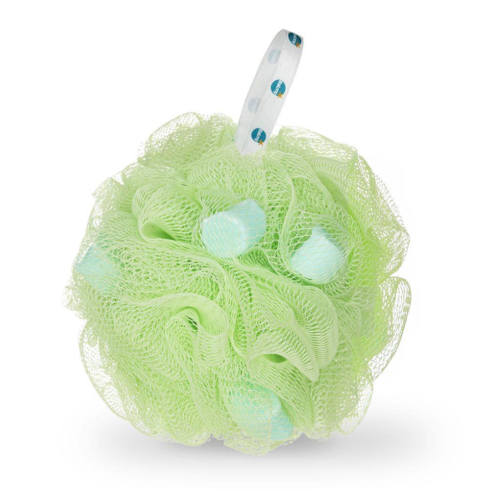 Balmy Olive Blossom sunđer za tuširanje sa sapunom omogućava bogatu penu bez dodatnog sapuna ili gela. Miris maslinovog cveta pruža osvežavajuće iskustvo tuširanja, dok nežna mrežasta struktura sunđera temeljno čisti i omekšava kožu.