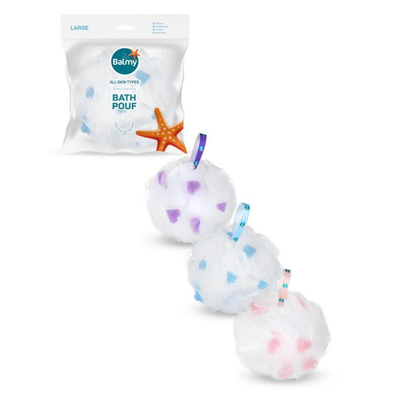 BALMY pufna za kupanje sa dodatkom dekoracije srca od sunđera u boji savršena je za svakodnevnu negu tela. Pruža bogatu penu uz minimalnu količinu gela za tuširanje, a blagi piling efekat pomaže u uklanjanju mrtvih ćelija, ostavljajući kožu glatkom i osveženom. Dekorativno srce od sunđera u ljubičastoj, plavoj ili roza boji unosi dodatnu dozu stila u vašu kupatilsku rutinu, čineći pufnu idealnom i za poklon. Poseduje trakicu za lako kačenje i brzo sušenje.