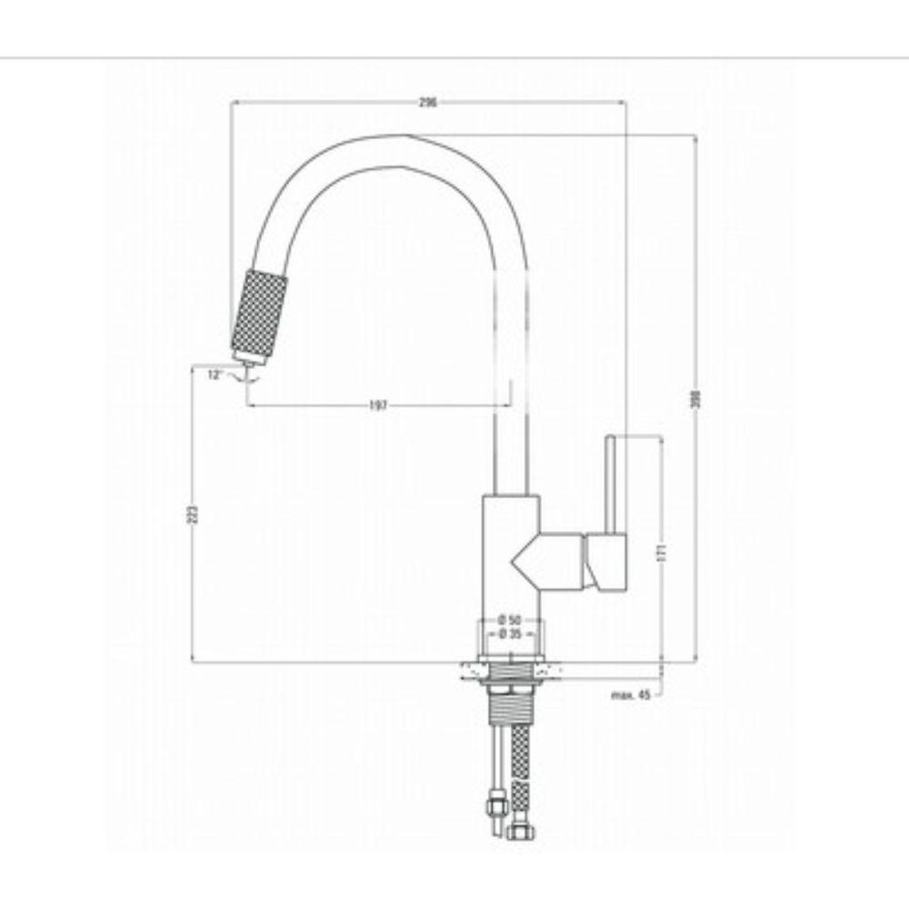 Brend: Deante Model: Aster BL/CP BCA B64M Materijal: Metal Boja: Crna Bakar Visina: 398 mm Raspon: 197 mm Mehanizam: Keramički mešač Tip slavine: Visokog pritiska Dodatna funkcionalnost: Mogućnost povezivanja na filter za vodu Garancija: 7 godina