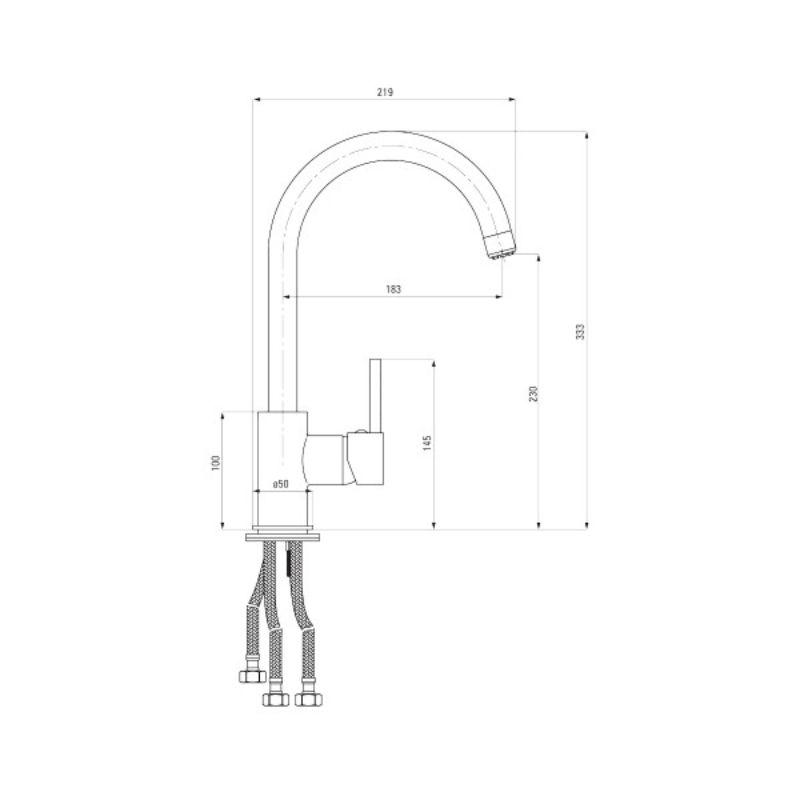 Keramički mešač omogućava preciznu kontrolu protoka i temperature vode, dok visina od 333 mm i raspon od 183 mm pružaju optimalnu funkcionalnost za svakodnevnu upotrebu.