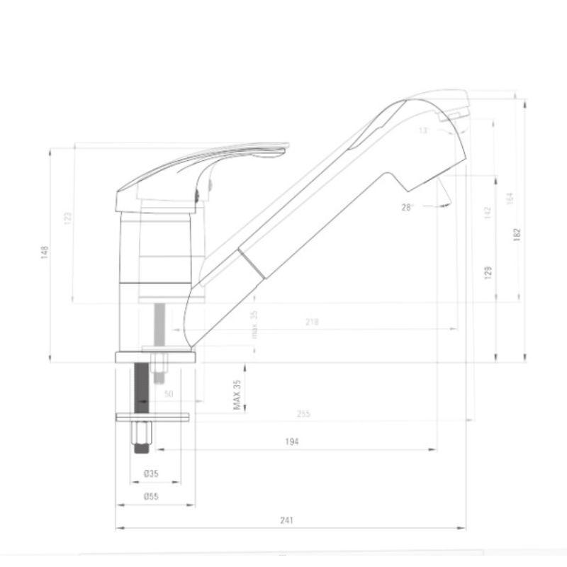 Ugrađeni keramički mešač pruža preciznu kontrolu temperature i protoka vode, dok crevo tuša dužine 194 mm omogućava dodatnu fleksibilnost prilikom korišćenja. Namenjena je za sisteme sa visokim pritiskom i lako se uklapa u većinu sudopera
