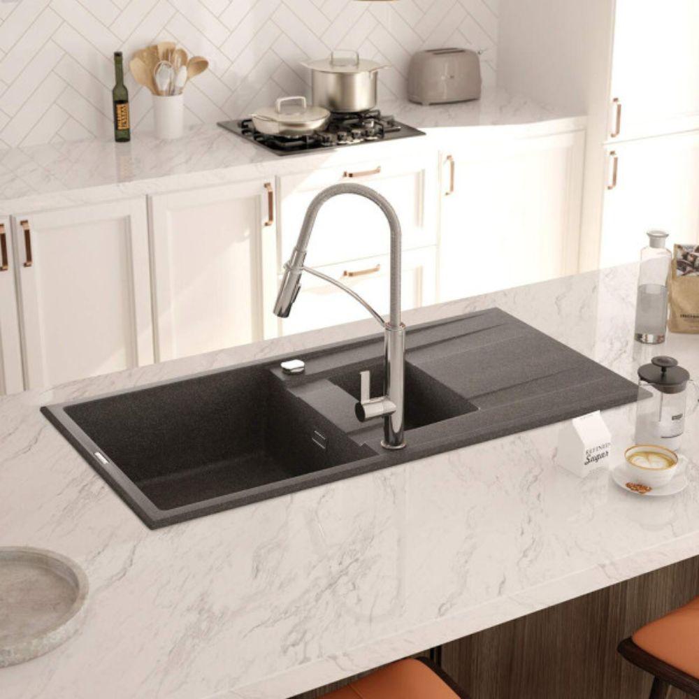 Deante Eridan 100/ANT/1.5/O je prostrana granitna sudopera sa jednim i dodatnim manjim koritom, idealna za savremene kuhinje koje traže funkcionalnost i estetiku. Antracit boja unosi moderan i elegantan izgled u prostor, dok granitni materijal garantuje visoku otpornost na grebanje, udarce i visoke temperature.