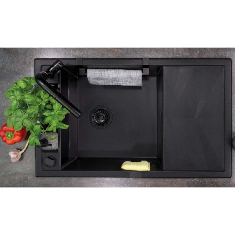 Deante sudopera Magnetic 82/N/O izrađena je od kompozitnog granita visoke otpornosti na ogrebotine, toplotu i hemikalije, pružajući dugotrajnost i savremeni izgled u kuhinji. Crna boja unosi dozu elegancije, dok jedno veliko i jedno pomoćno korito pružaju dodatnu fleksibilnost u obavljanju više kuhinjskih zadataka istovremeno.