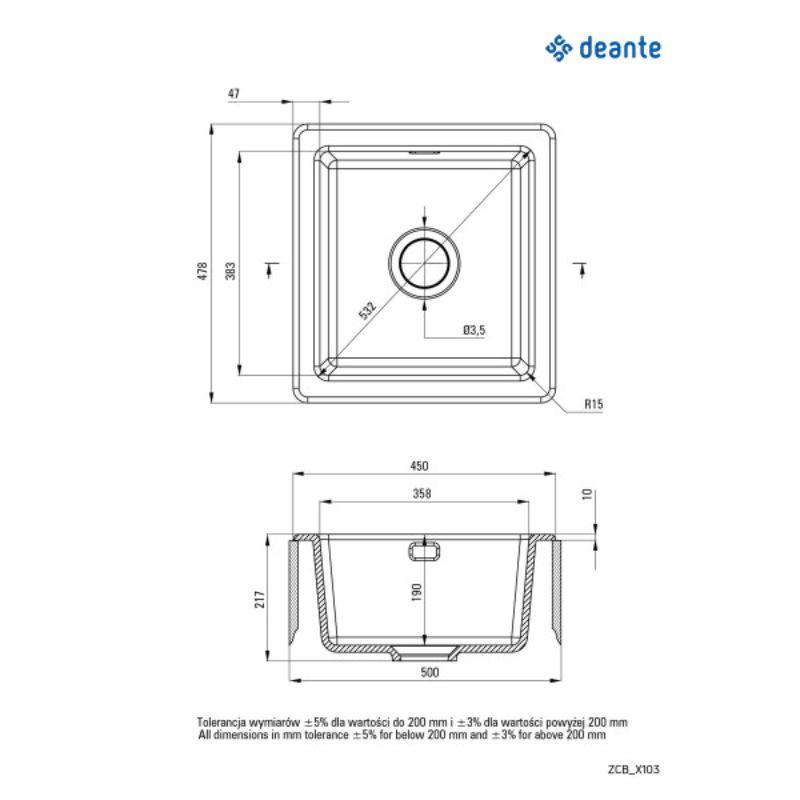 Brend: Deante Model: Sabor 45/WH ZCB 6103 Tip: Keramička sudopera Boja: Bela Broj korita sudopere: 1 Dubina korita: 19 cm Materijal sudopere: Keramika Oceđivač: Ne Širina korpusa za ugradnju: 50 cm Tip ugradnje sudopere: Standardna Dimenzije sudopere: 383 x 358 x 190 mm Odvod sudopere: 3,5 inča