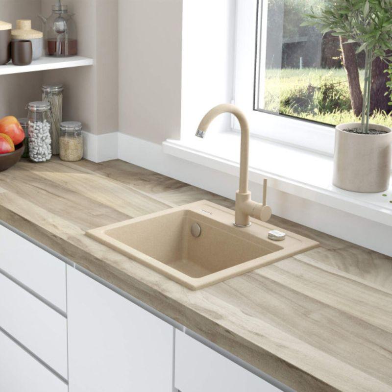 Sudopera u pesak boji izrađena je od visokokvalitetnog granita, što garantuje otpornost na ogrebotine, visoke temperature i hemikalije. Jedno korito dubine 16 cm pruža dovoljno prostora za praktično pranje posuđa, dok standardna ugradnja omogućava jednostavnu montažu u kuhinjske elemente širine 45 cm.