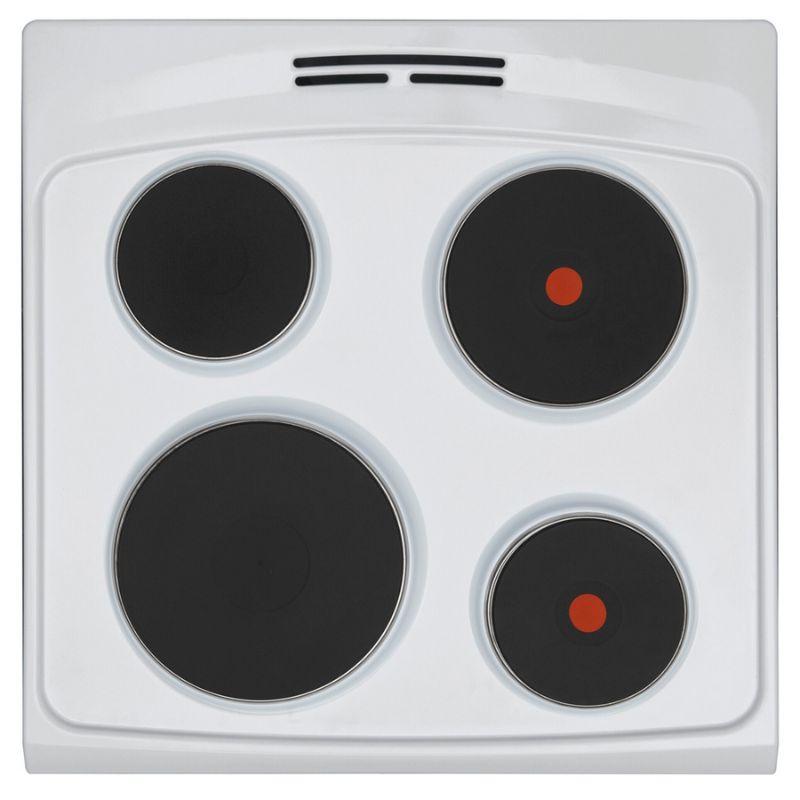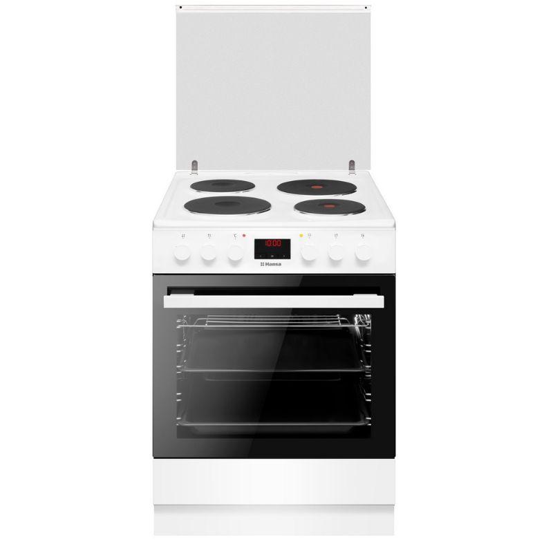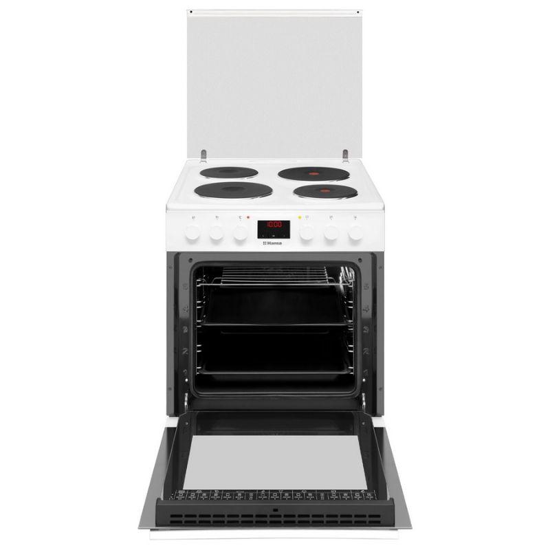 Brend: Hansa Model: FCEW68223 Tip: Električni šporet sa električnom rernom i ringlama Boja: Bela Širina: 60 cm Rerna: Električna Broj programa pečenja: 3 Tajmer: Digitalni Turbo rerna sa ventilatorom: Da Grill: 2000 W Kapacitet rerne: 65 l Energetska klasa: A Gornji grejač: 900 W Donji grejač: 1100 W Ploča: Emajlirana Gorionici: 1 brzozagrevajuća ringla 18 cm 2 kW, 2 standardne ringle 14.5 cm 1 kW, 1 standardna ringla 21 cm 2 kW