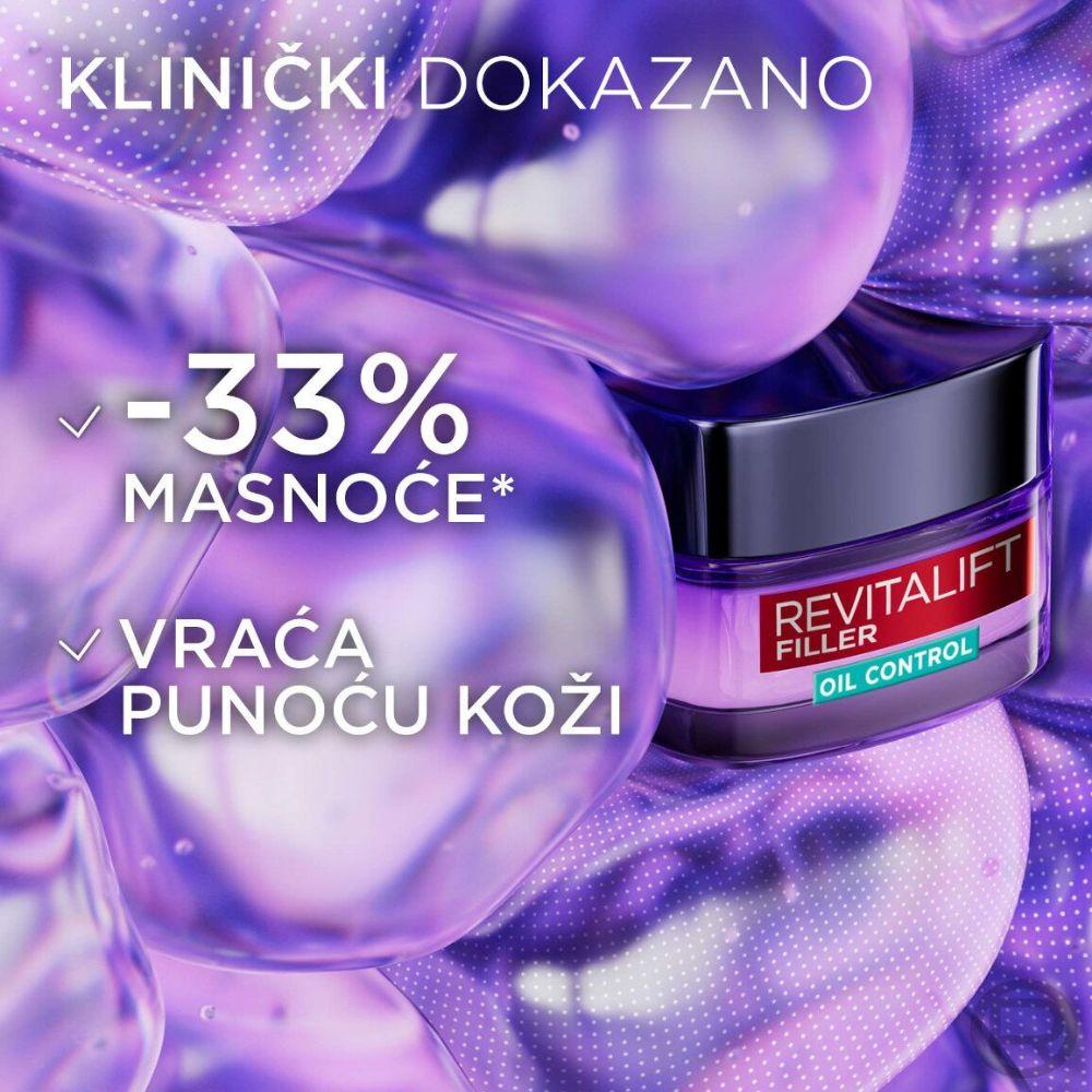Revitalift Filler krema pruža efekat zdrave, hidrirane i uravnotežene kože bez masnog sjaja – idealna za svakodnevnu upotrebu i kao podloga za šminku.