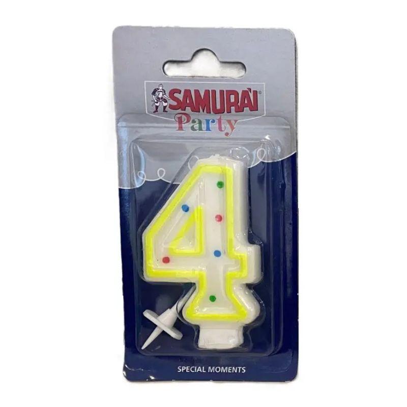 Samurai rođendanska svećica broj 5 idealna je za obeležavanje petog rođendana ili kao deo kombinacije za brojeve poput 15, 25, 50... Izrađena od kvalitetnog materijala i opremljena praktičnim plastičnim postoljem koje omogućava jednostavno i stabilno postavljanje na tortu. Sa šarenim i veselim dizajnom, unosi radost i svečanost u svaku rođendansku dekoraciju.