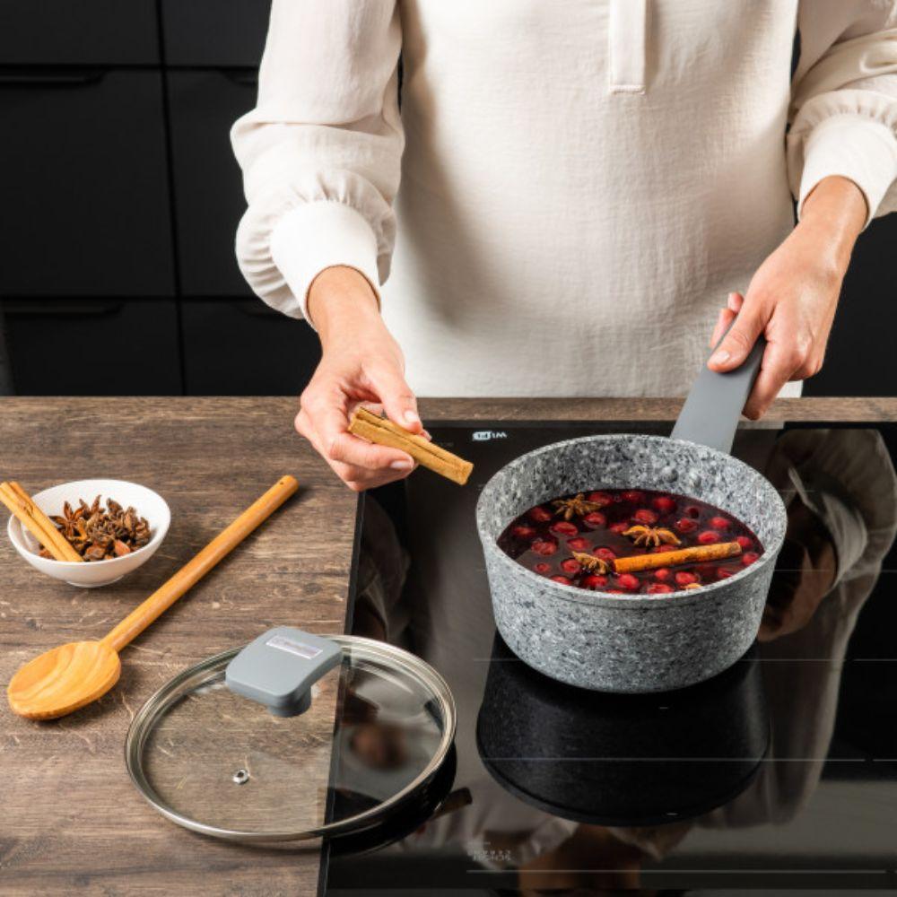 Napredni granitni nelepljivi premaz u tri sloja omogućava pripremu hrane bez lepljenja i olakšava čišćenje, dok elegantna siva granit boja doprinosi modernom izgledu svake kuhinje. Stakleni poklopac sa ventilom za paru osigurava kontrolu tokom kuvanja bez gubitka toplote.