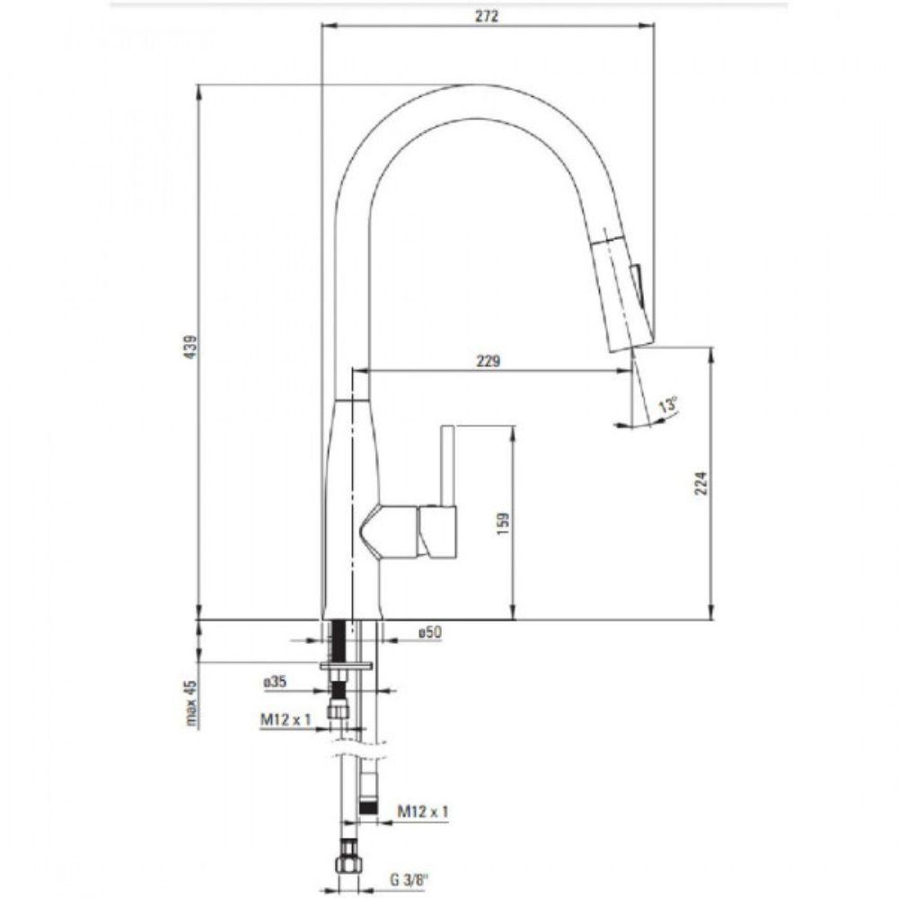 Deante Lukrecja BDH N72M je moderna kuhinjska slavina elegantnog dizajna, izrađena u kombinaciji grafit i hrom završne obrade, što joj daje sofisticiran izgled i savršeno je uklapa u savremene enterijere. Visina od 416 mm omogućava lako pranje većih posuda, dok keramički mešač osigurava dug vek trajanja i preciznu regulaciju temperature i protoka vode.