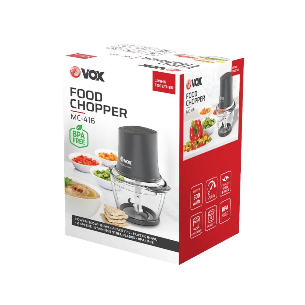VOX MC 416 seckalica je praktičan i svestran uređaj koji olakšava pripremu napitaka, smesa, supa i drugih obroka. Zahvaljujući motoru snage 300 W i noževima od nerđajućeg čelika, omogućava brzo i precizno seckanje, mlevenje i blendiranje sastojaka.