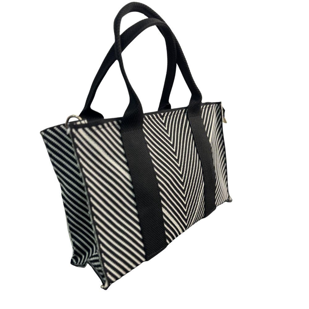 lorix torba 8258-12 je moderna i praktična ženska torba namenjena svakodnevnoj upotrebi. Izrađena je od kvalitetnog tekstila koji pruža lagan osećaj, dugotrajnost i jednostavno održavanje. Sa svojim prepoznatljivim crno–belim dezenom u obliku dijagonalnih linija, torba lako upotpunjuje različite modne kombinacije.